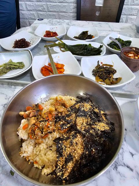 This is a must if you like mussles. It is rice with mussles and seaweed. I went to a restaurant in Jeodonghan port called Myeongga(명가) for this and it was incredibly good and I would honestly come back to Ulleungdo just to eat here again. They also served so many side dishes that I felt bad for not being able to finish it all.