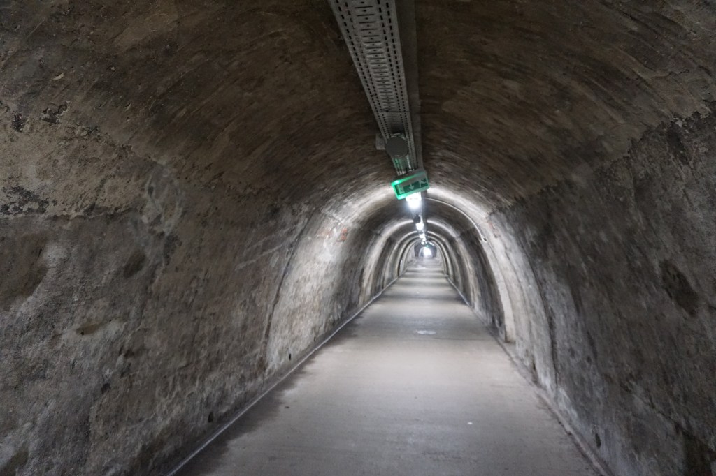 Built in 1943 as a bomb shelter and air raid shelter during World War II, it now serves as a pedestrian tunnel. Even if it is hot outside in the summer this tunnel will let you cool down while you are in it. Which is why it became my favorite spot of my stay.