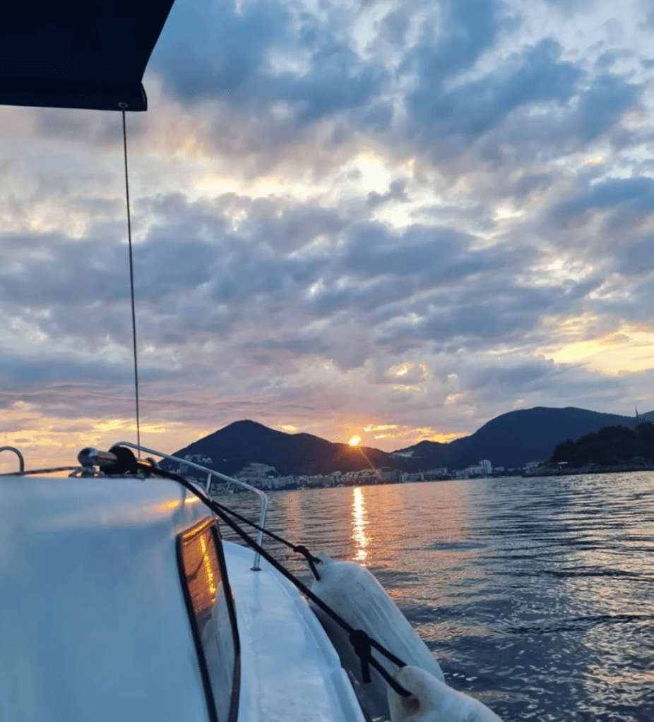 Imagine stopping the boat not far from the island that no one can travel to anymore. You are however just a short swim away from it with the sun setting right behind Sveti Stefan. It is just a little bit of magic from a daily occurence while on holiday.