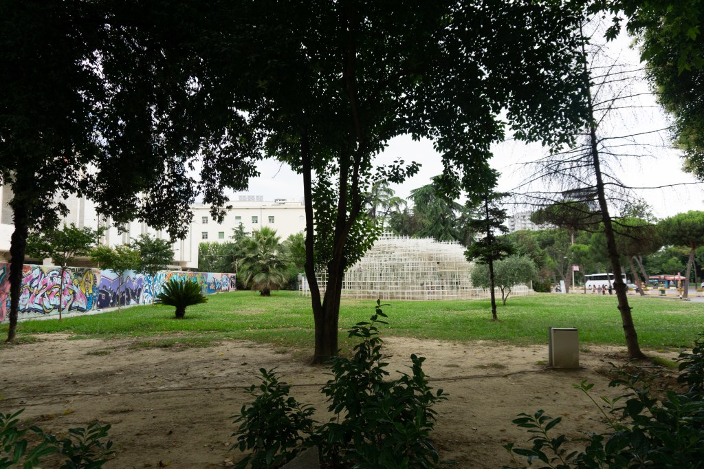 Just right around the corner from Bunk Art 2 is The Cloud which is designed by architect Marco Casamonti. It was made to enhance Tirana urban landscape and it looks interesting from afar. When you walk closer it is possible to enter it and if you search it up on Google you can find articles saying it was made for social exchange. I do agree as I had a nice chat with a lady there while we helped taking pictures of eachother inside the structure.